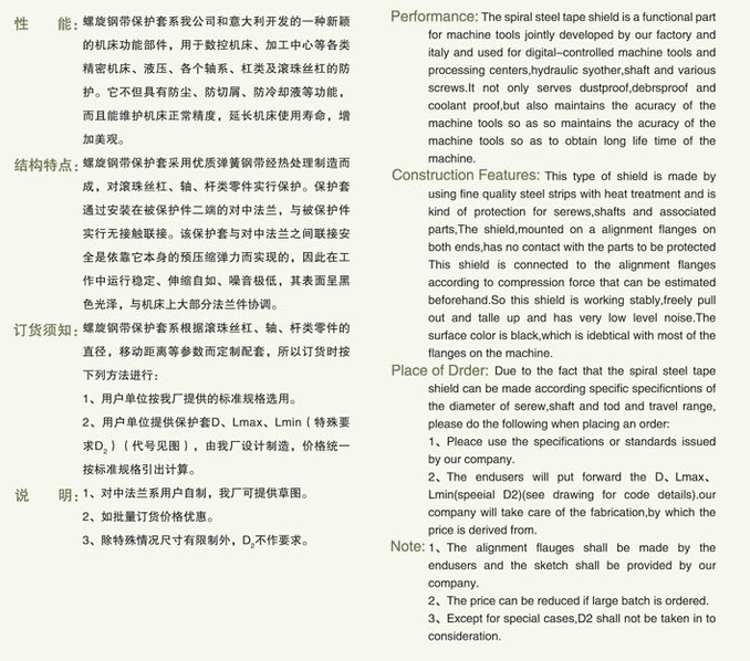 適用于數(shù)控機(jī)床,加工中心等各類精密機(jī)床,液壓、各個(gè)軸系,杠類及滾珠絲杠的防護(hù),它不但具有防塵、防切屑、防冷卻液等功能,而且能維護(hù)機(jī)床正常精度,延長(zhǎng)機(jī)床使用壽命,增加美觀。