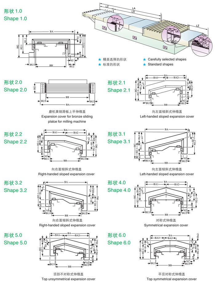 標準形狀橫梁伸縮式鋼板護罩設(shè)計圖 |